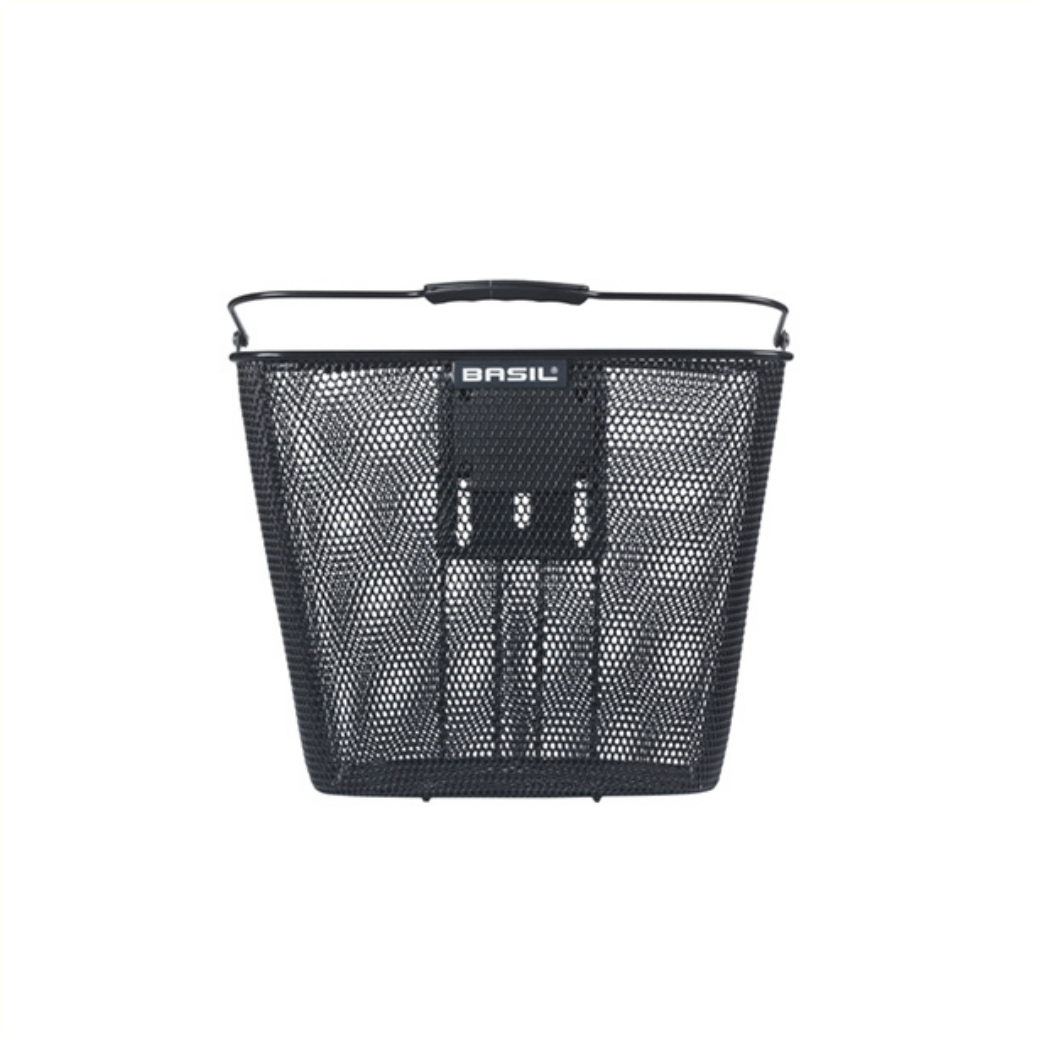 Staal, fijnmazig, afneembaar, inclusief voorgemonteerde KF plaat (70158), past op Basil KF handlebar holder (70177) en stemholder (70189) (apart verkrijgbaar), hengsel met kunststof grip,mand in hoogte verstelbaar d.m.v. sleuven