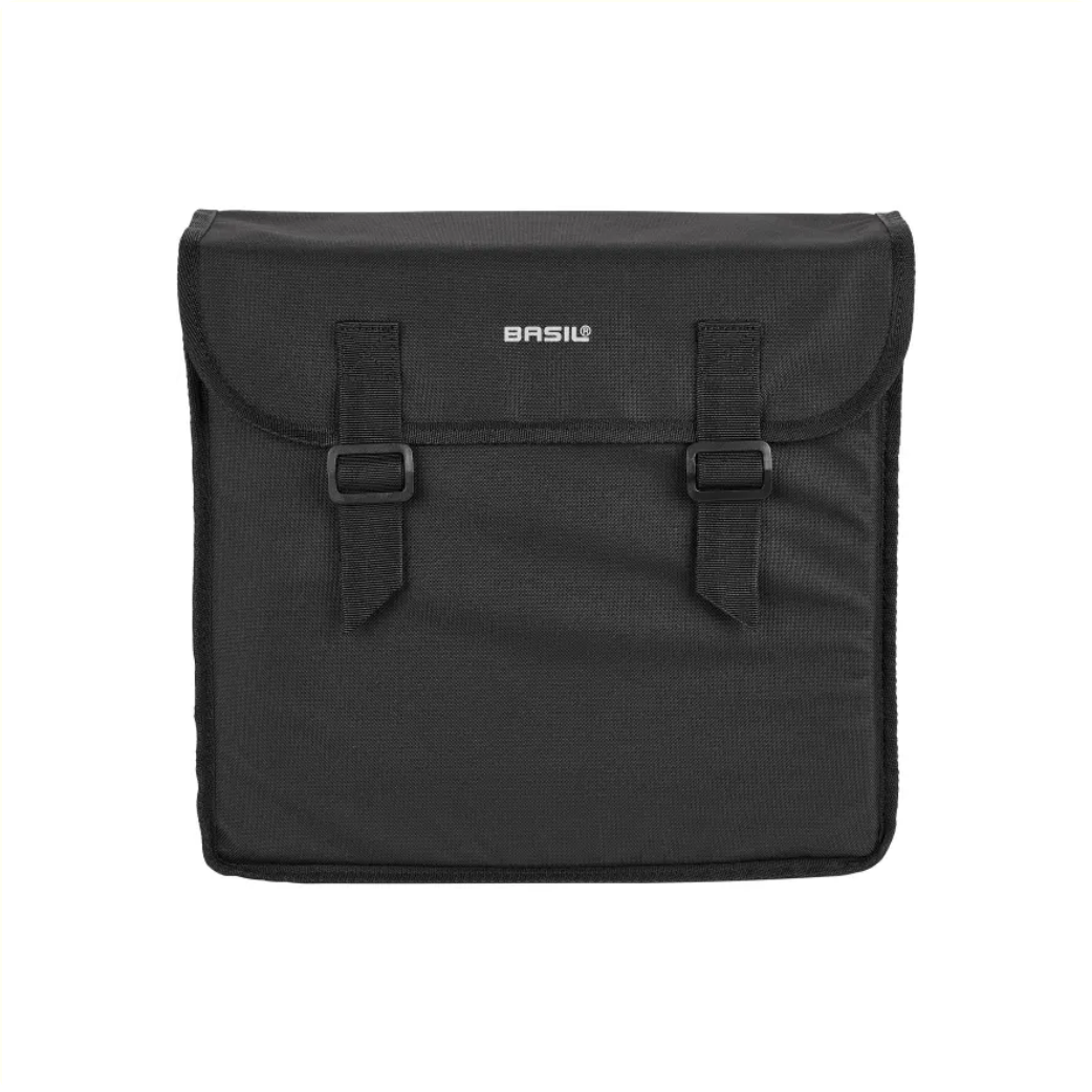 De Basil Mara XL is een dubbele fietstas in een zwarte uitvoering. Deze stijlvolle fietstas is geschikt bevestiging aan de bagagedrager van een dames- of herenfiets.Een dubbele fietstas met inhoud van 35 liter, ideaal dus voor boodschappen of andere benodigdheden uit de winkel.Voorzien van dubbele reflecterende strepen aan de voor- en achterkant. Daarmee ga je altijd veilig het fietspad op.