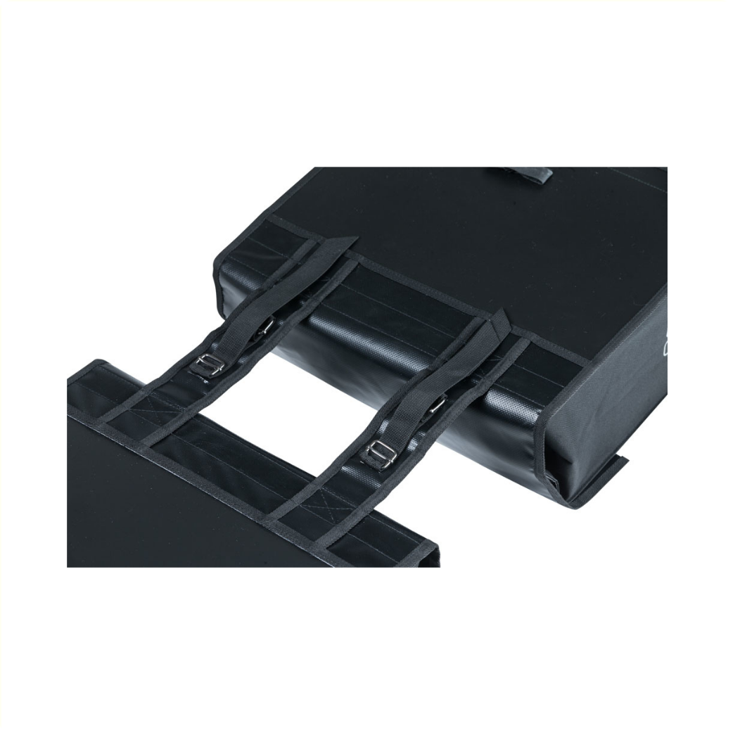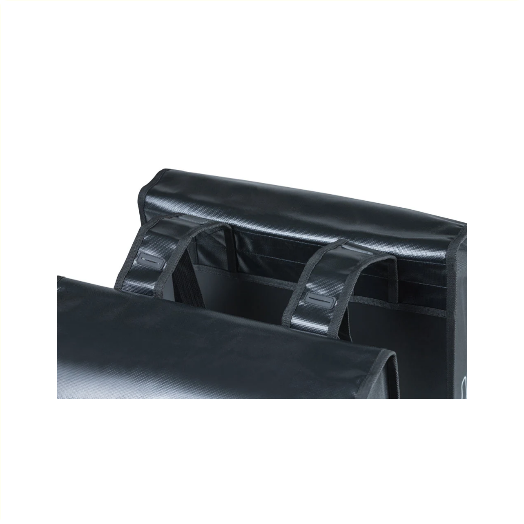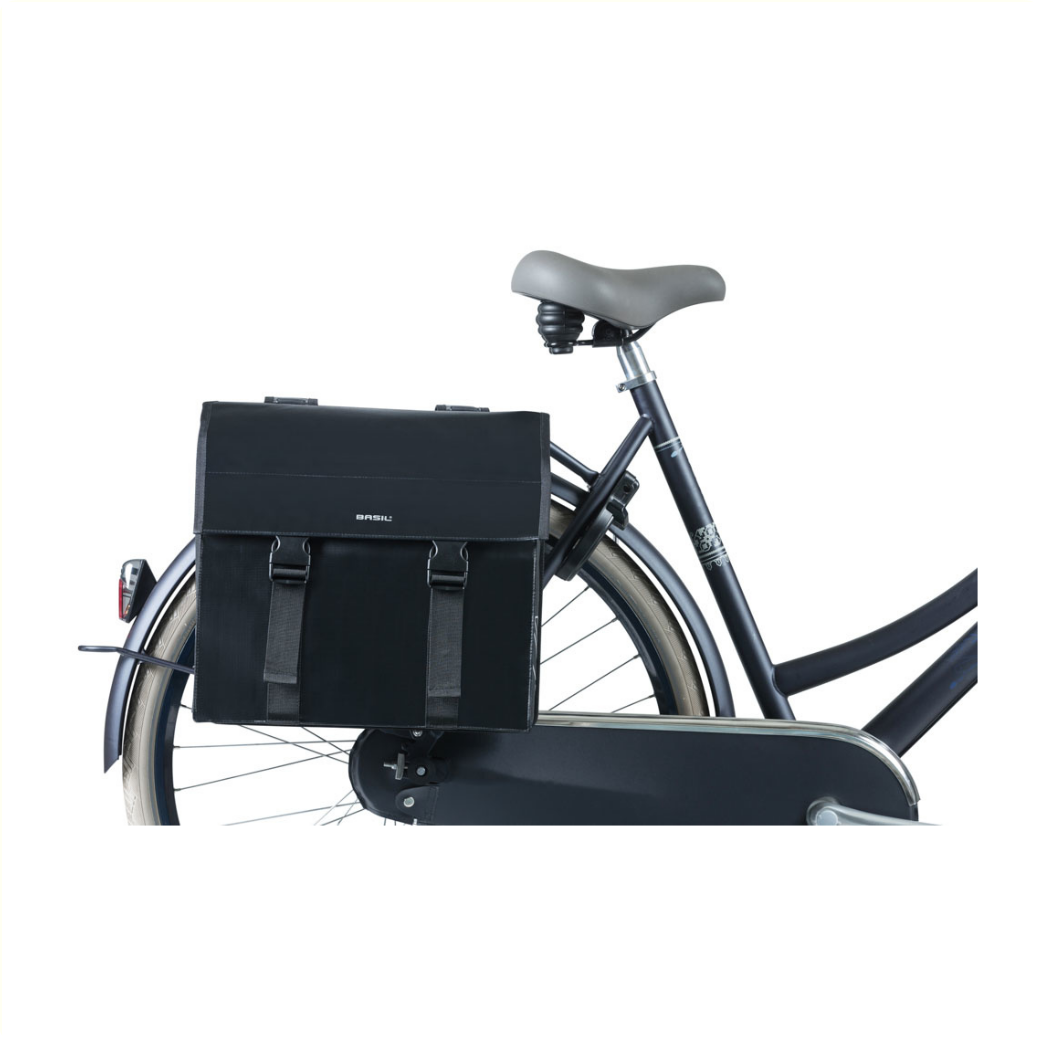 De Basil Urban load dubbele fietstas is een moderne fietstas voor de echte stadsmensen onder ons. Deze tas is ruim, georganiseerd, flexibel en heeft een strakke uitstraling. Door het waterafstotende tarpaulin kan de tas wel tegen een regenbuitje. Ook de vouwsluiting is waterkerend en voorkomt inregenen. Weer of geen weer, jij stapt op de fiets, of het nu naar kantoor, de supermarkt of de sportschool is! De ruime fietstas heeft een inhoud tot wel 53 liter. Je kunt de tas door de verstelbare kliksluiting naar gewenste hoogte inpakken en sluiten. Hier kun je dus heel wat boodschappen, sportkleren of andere benodigdheden in kwijt. Als de tas leeg is, is die compacter of smaller te maken door de flexibele zijkanten. Zo is het parkeren van je fiets bij die overvolle fietsenstalling een stuk gemakkelijker. De Urban Load is voorzien van het Basil Universal Bridge System waardoor die op alle bagagedragers past (ook e-bikes) en gecombineerd kan worden met bevestigingssystemen als Racktime en i-Rack/Carrymore. In het donker ben je beter zichtbaar door de reflectiedetails op beide kanten van de tas. De Basil Urban load is in meerdere kleuren beschikbaar, gebaseerd op de colorblock trend. Zo is er een groen met witte variant, grijs met goud/geel en zwart met reflecterende stippen. Ben je benieuwd naar deze andere kleuren? Kijk dan eens hier.