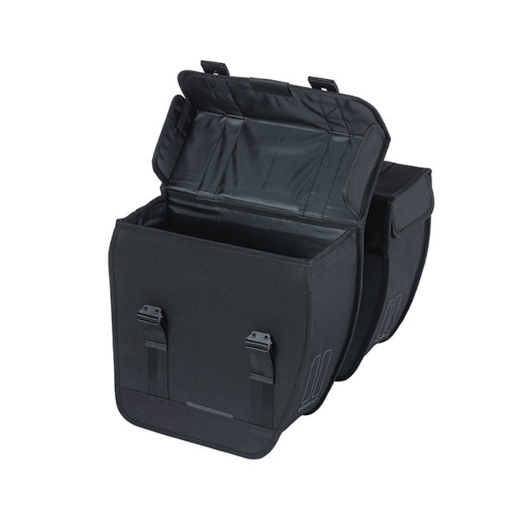 • De dubbele fietstas beschikt over eenvoudig bedienbare sluitingen.