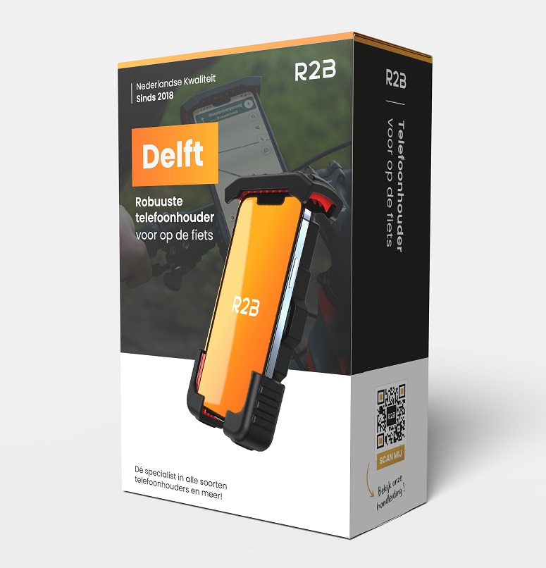 R2B Telefoonhouder 'Heavy Duty' Delft, Zwart.