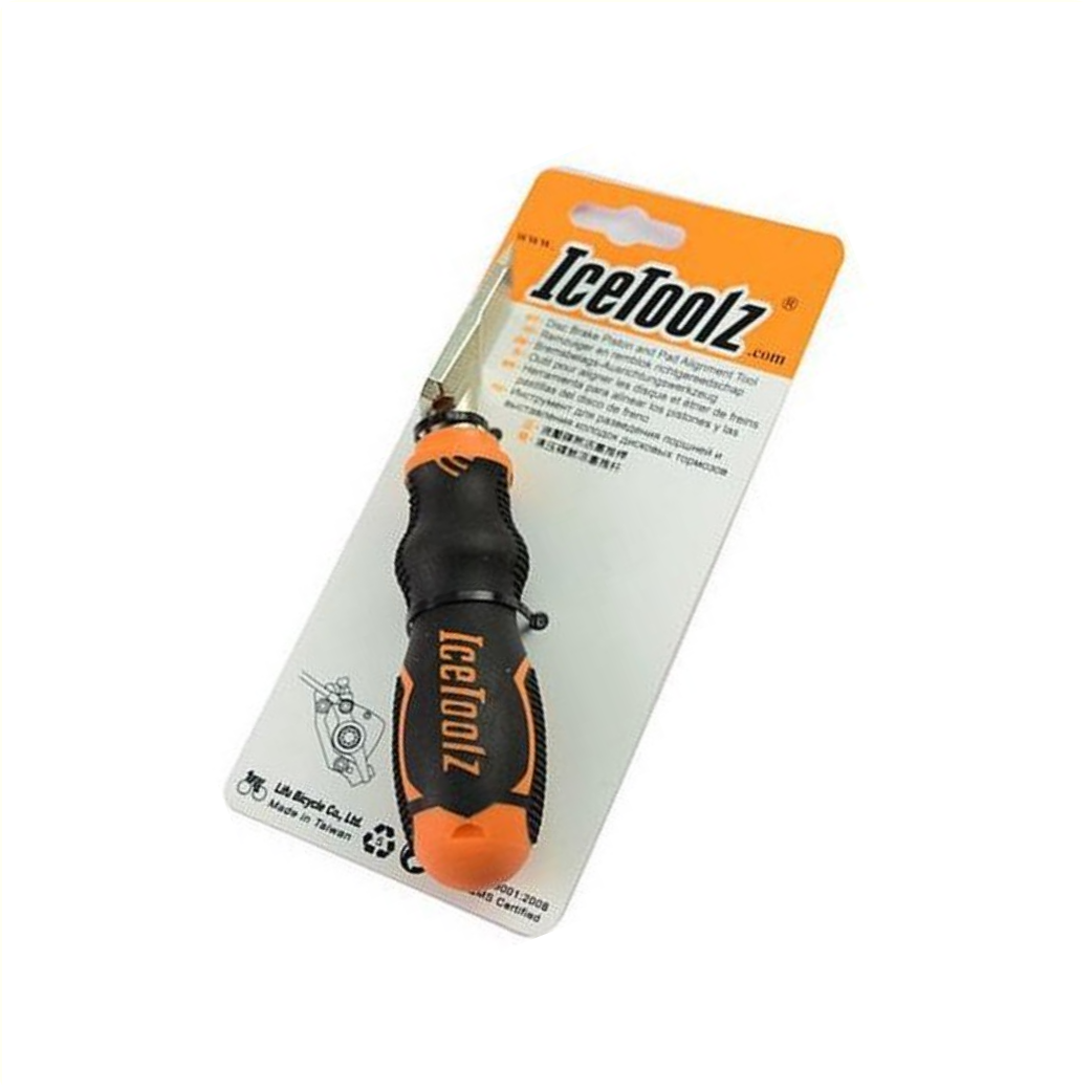 • Om de remblokken weer in de juiste positie te krijgen, gebruikt u dit IceToolz remblok richtgereedschap.