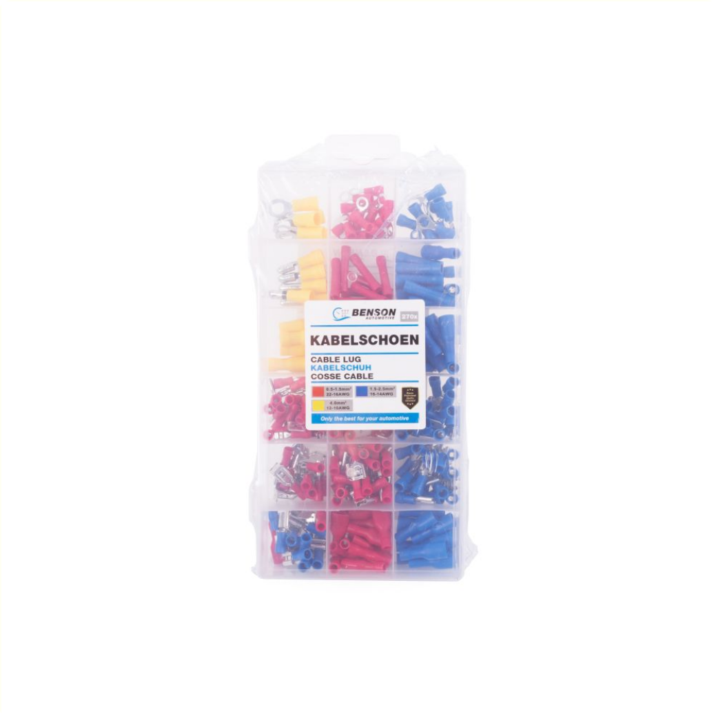 Kabelschoen assortiment, 270 stuks in opbergbox.Kabelschoen assortiment, 270 stuks in opbergbox.
