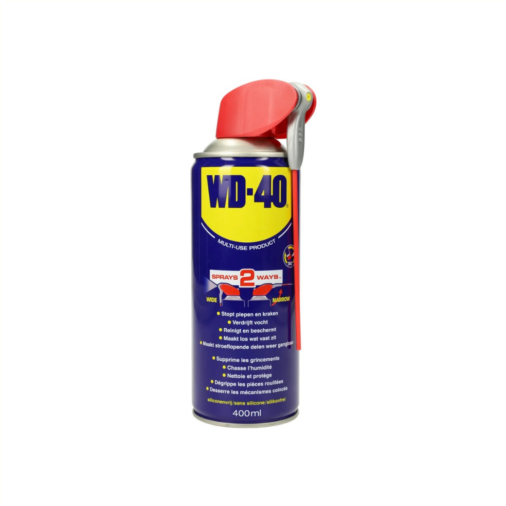 • Dankzij de slimme Spray2Ways-technologie kun je met het Smart Straw rietje zowel breed als nauwkeurig spuiten. Met het rietje omhoog kun je met de WD-40 Smart Straw makkelijk en nauwkeuriger spuiten in vastzittende of geblokkeerde onderdelen. Zo kun je dus ook moeilijk bereikbare onderdelen smeren en beschermen tegen roest en corrosie. Als je daarna ook nog een groot oppervlak moet behandelen kun je het rietje naar beneden klappen.