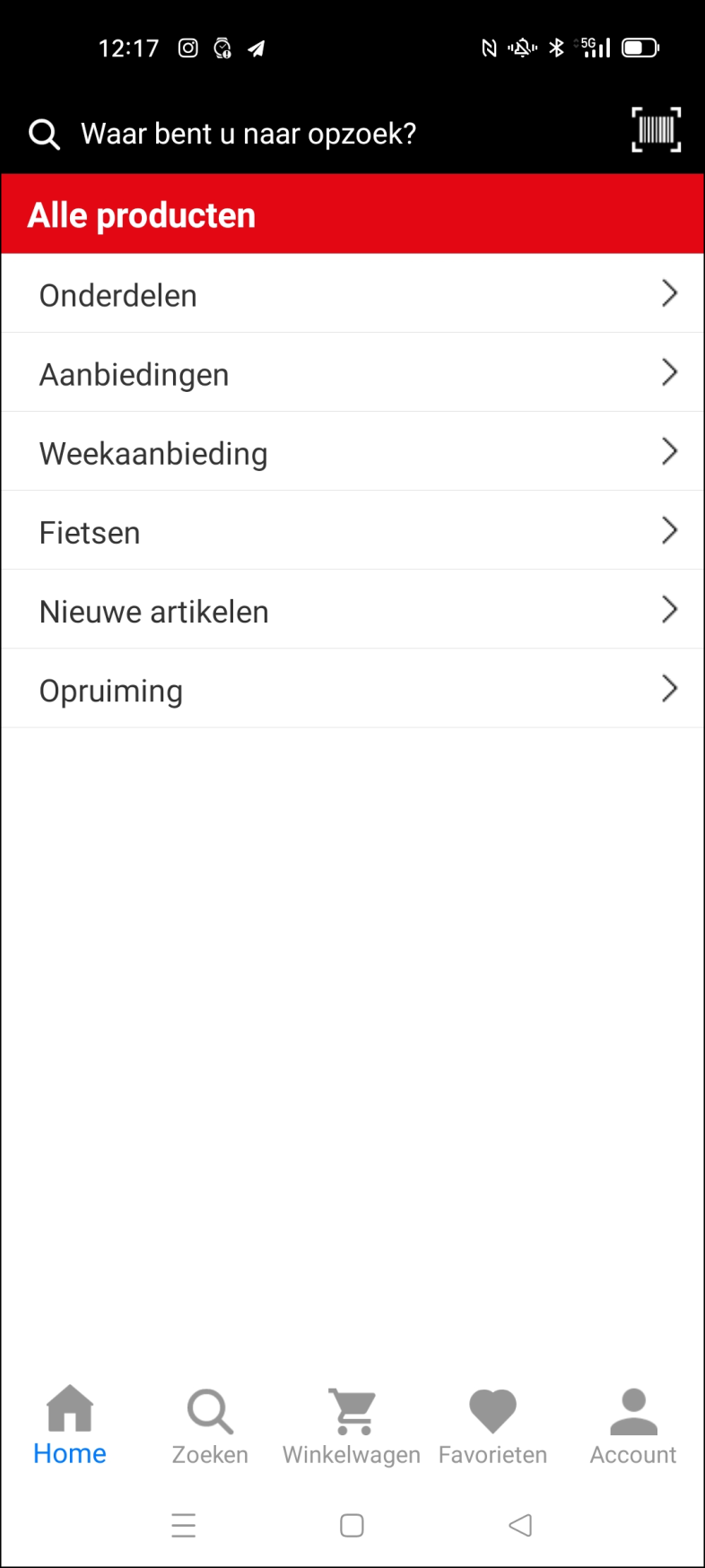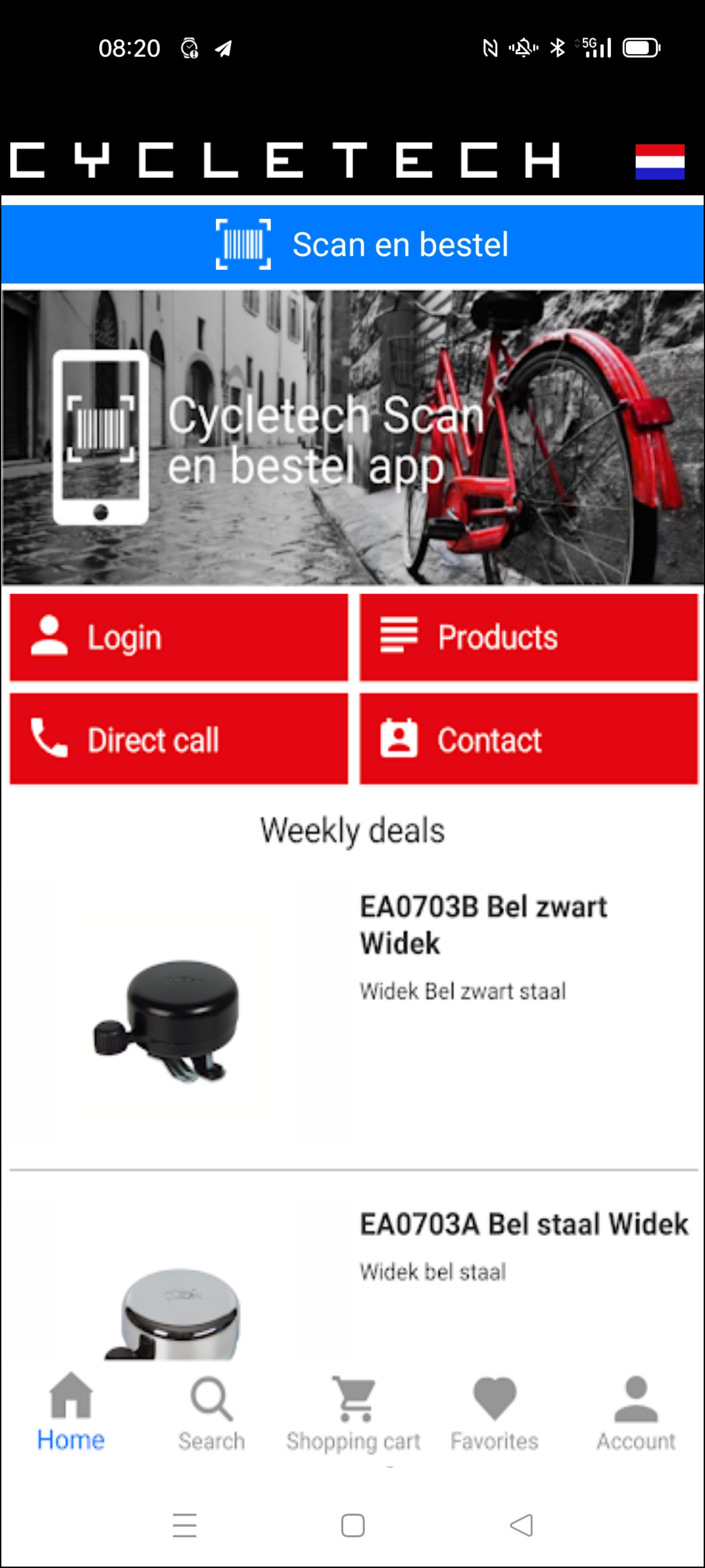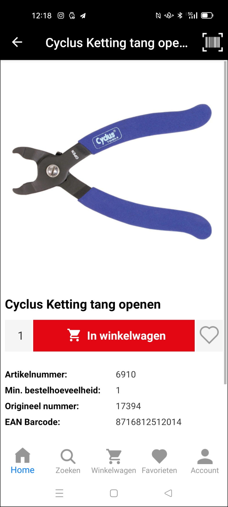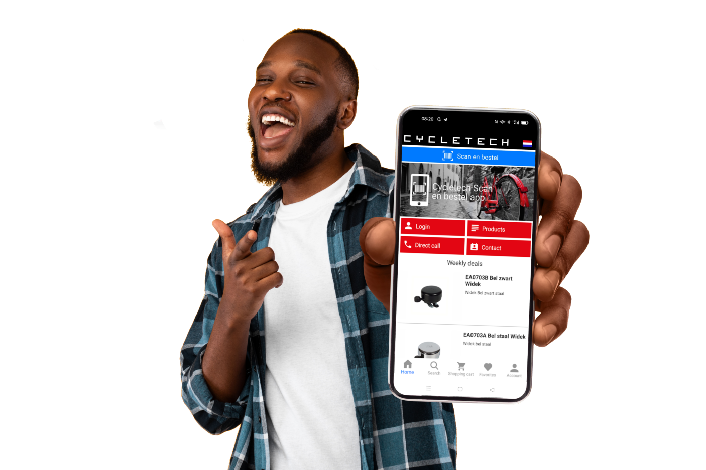 Scan de barcode van producten mbv de blauwe balk en bestel eenvoudig uw artikelen bij Cycletech.