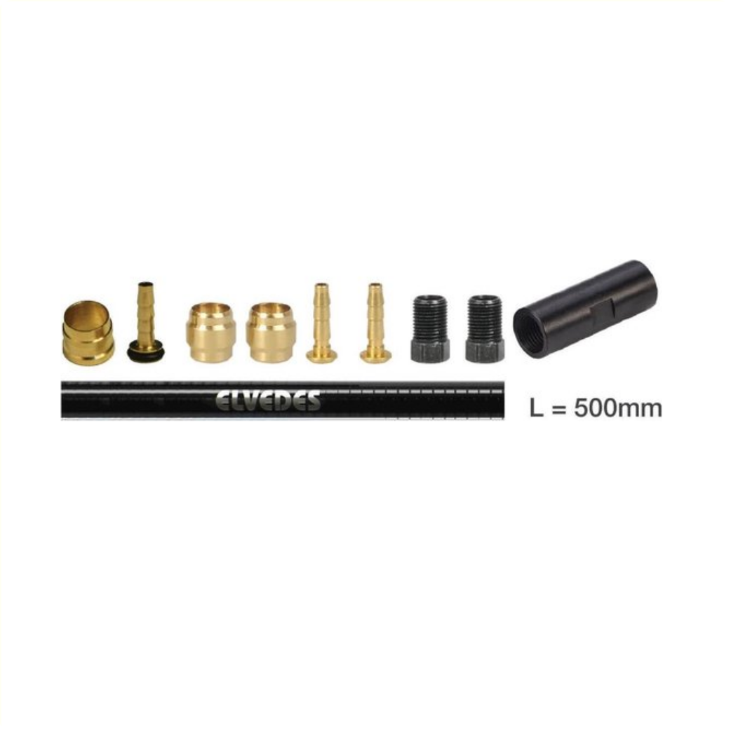 Elvedes kit om de hydraulische leiding met 50cm te verlengen. • alleen te gebruiken icm de originele Tektro remleidingen