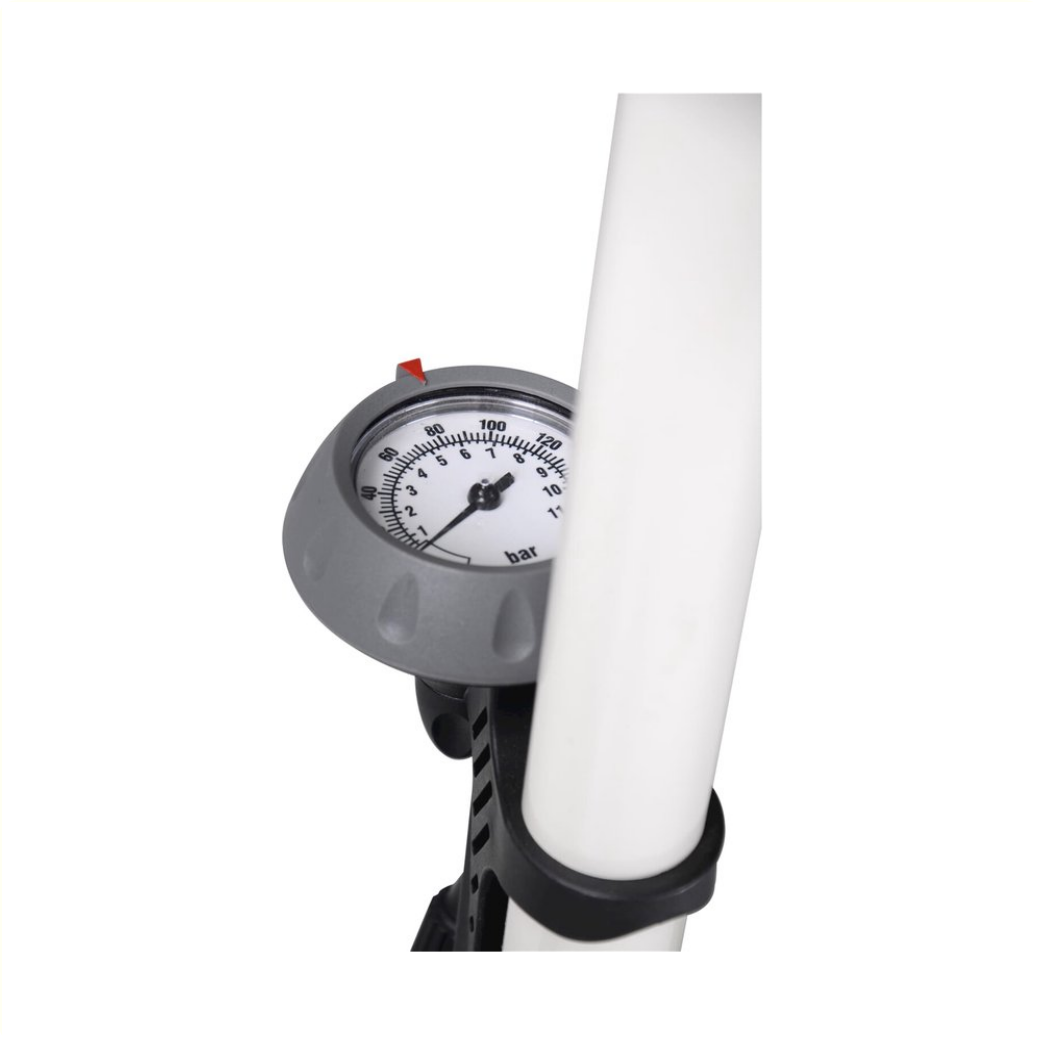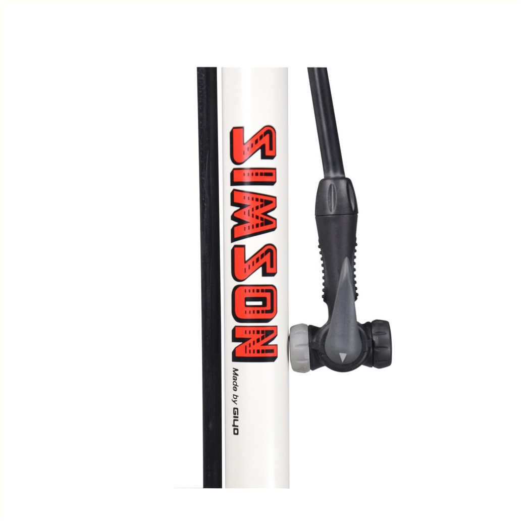 Deze Simson Hogedrukpomp met manometer is geschikt voor het oppompen van alle soorten banden. • De dubbele pompkop past op alle soorten fietsventielen. • De handige manometer meet hoeveel lucht er in de band zit tot maximaal 11 bar.