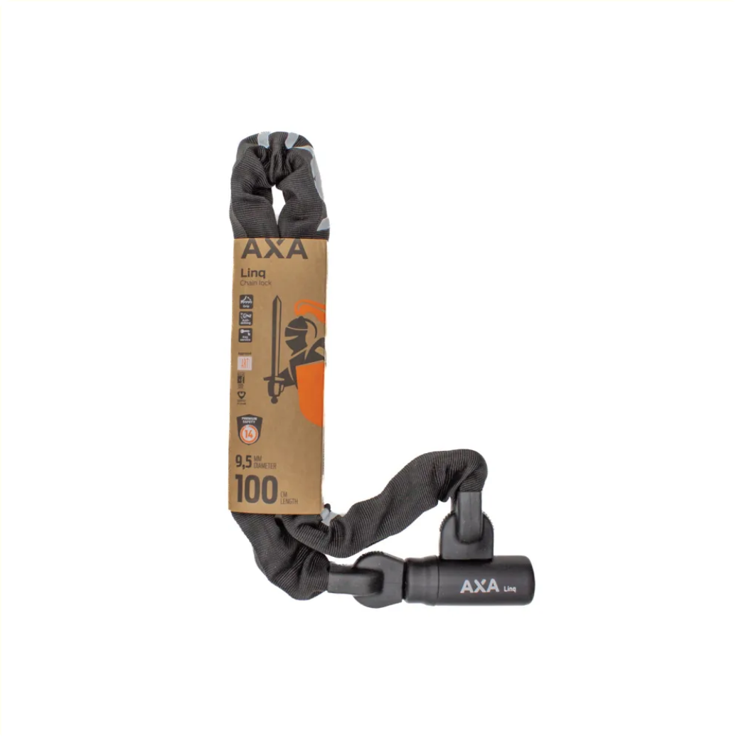 De AXA Linq 100 is een extra sterk, goedgekeurd (ART 2 sterren, Sold Secure Gold en Varefakta) slot doordat de schakels doorlopen tot in de sluiting. De kwalitatief hoogwaardige ketting is uitermate geschikt voor de (extra) beveiliging van uw fiets.
