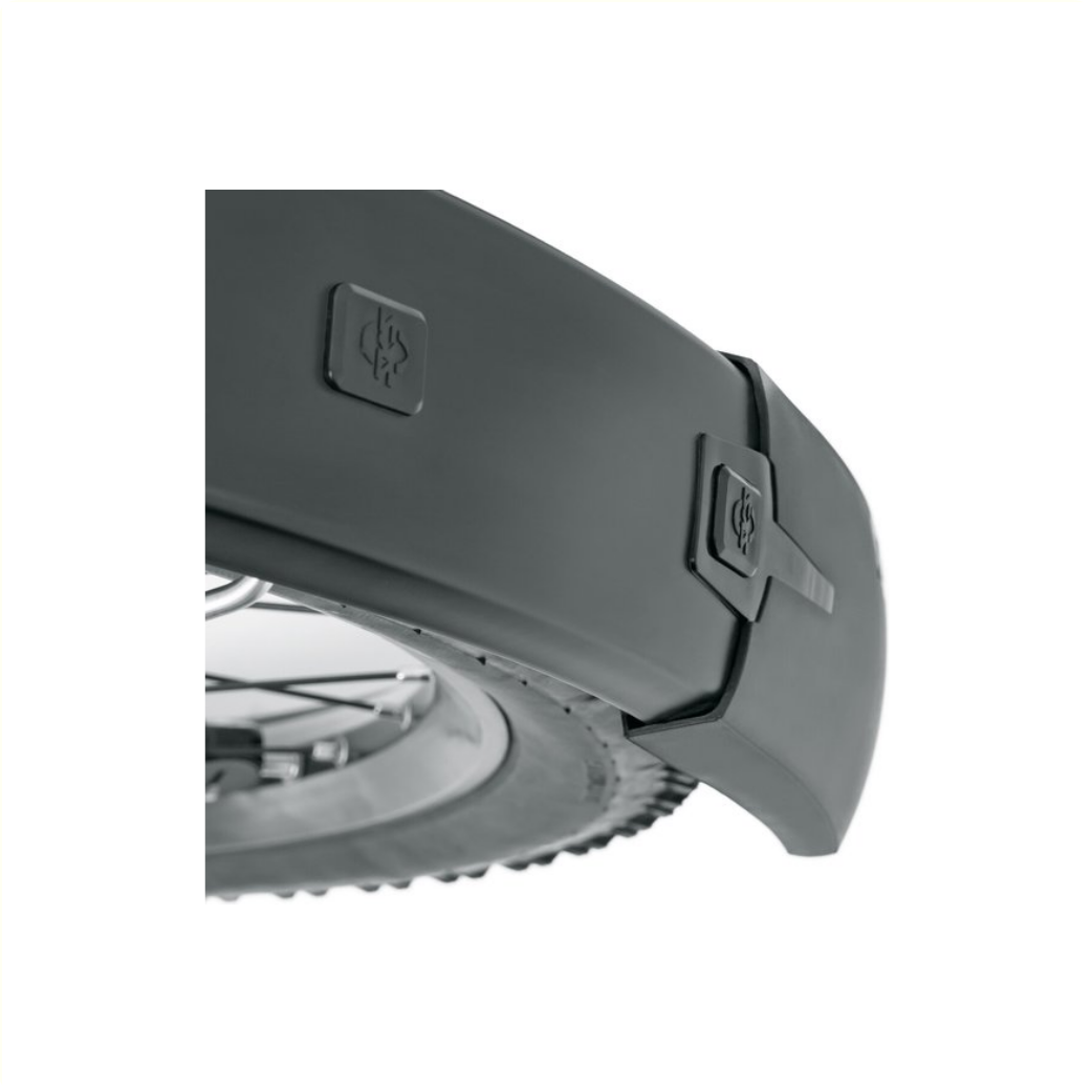 Met zijn matzwarte oppervlak en de zwarte befestigingscomponenten laat de BLUEMELS STYLE qua uiterlijk niets te wensen over. Het nieuw ontwikkelde V-adapter met ESC-veiligheidssysteem ontkoppelt de dubbele U-stangen als er takken tussen de spaken komen, zodat het wiel niet blokkeert. Inclusief accessoires en stangen.