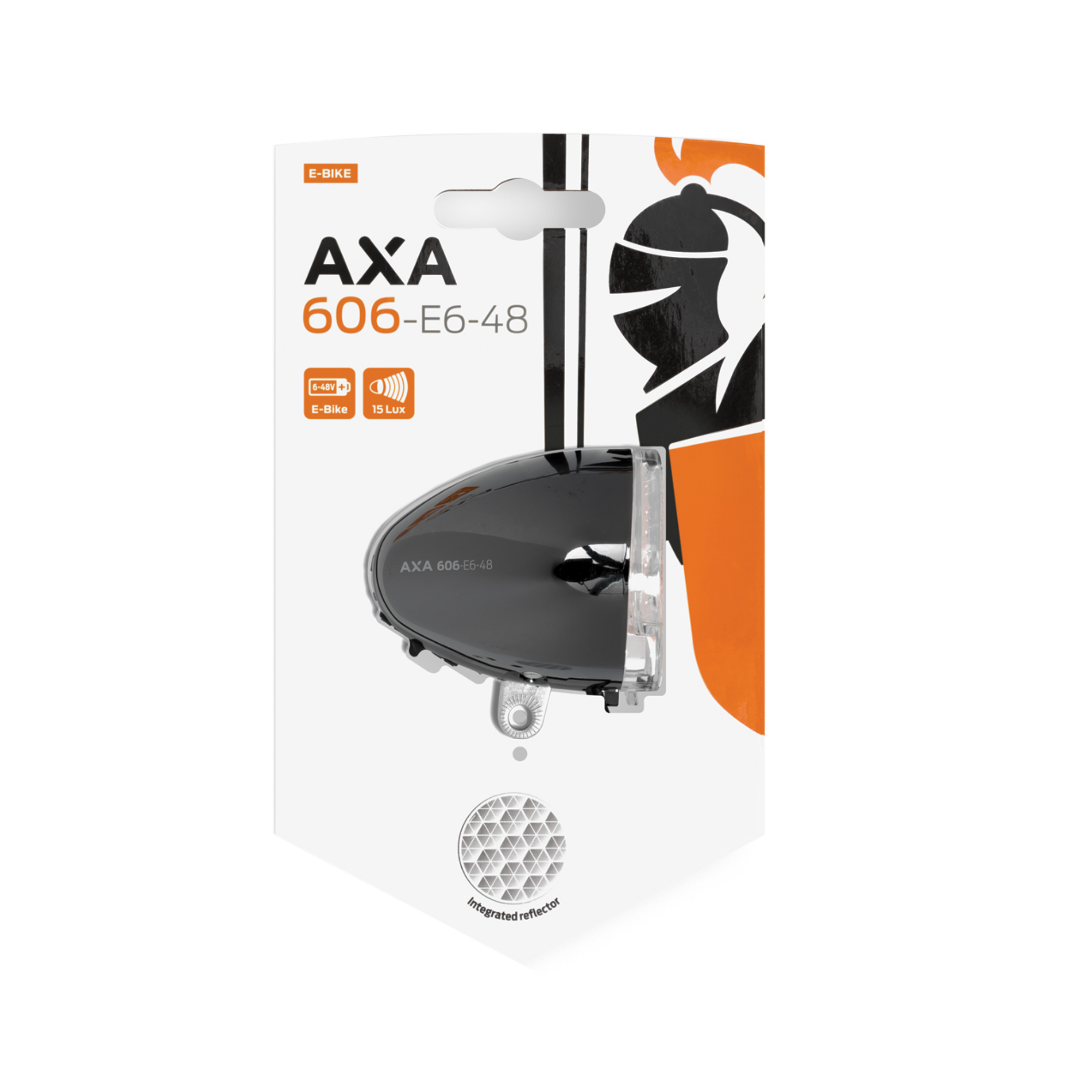 Axa 606 E6-48 Koplamp • 15 lux LED lamp • Geïntegreerde reflector • Voldoet aan de Duitse (StVZO) reglementen • Speciaal voor aansluiting op 6-48V E-bike batterij Retro design • Water en schok bestendig