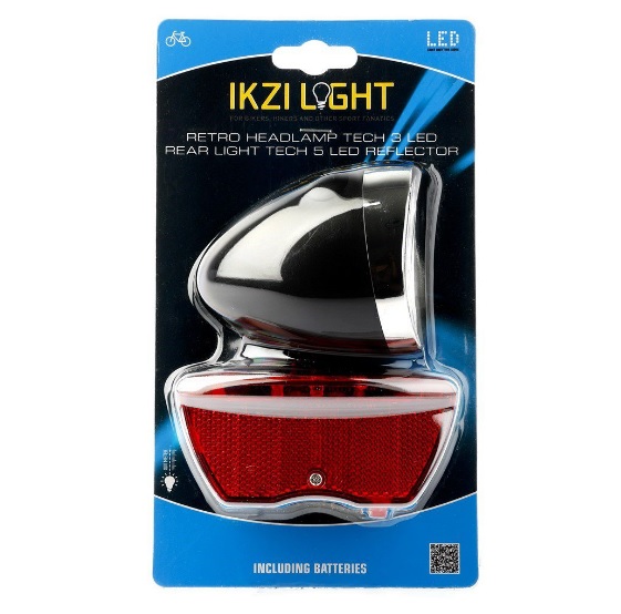 IkziLight koplamp Retro 3xLED, zwart en reflector 5xLED • Achterlicht voor bevestiging aan drager 80mm • Standlicht • Super helder en krachtige rode 5x LED achter met reflector • Super helder en krachtige witte 3x LED voor • Zichtbaar tot 800 meter