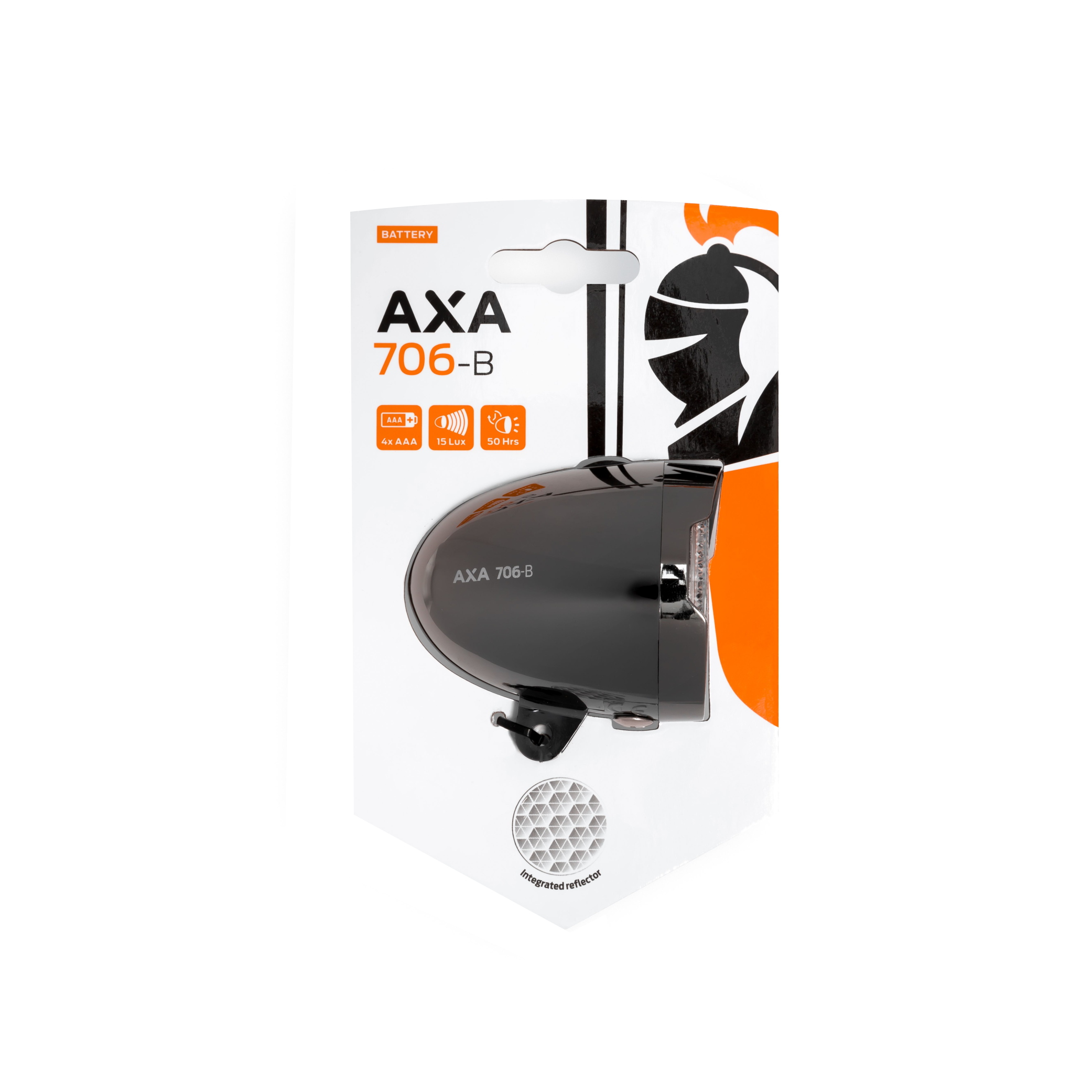 Axa 706 B Koplamp • High power LED lamp tot 15 lux • Behuizing in dark chroom look • Eenvoudige batterijwissel • Inclusief 4 AAA batterijen • Tot 50 uur batterij levensduur • In het oog springend retro design