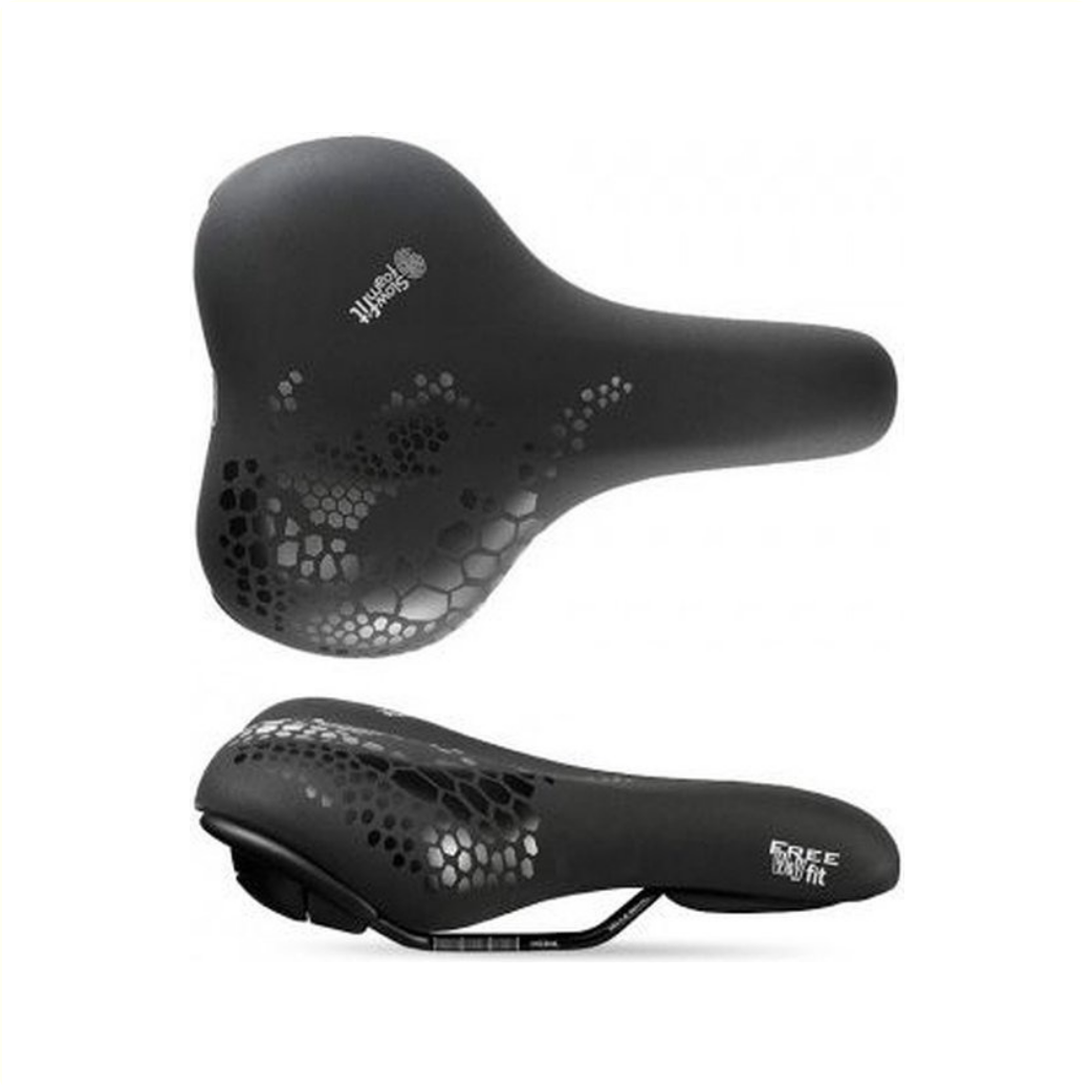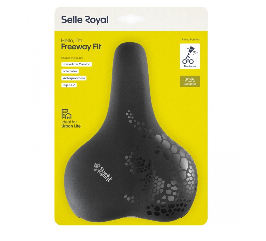 Selle Royal zadel A194 Freeway Fit Heren Moderate zwart, clip systeem, Slow Fit Foam, Scuff guards, Classic black blasted OXE rail + scale, Freeway Fit voor vrouwen combineert het directe comfort van zachte zadelhoes met het vormgeheugen van onze nieuwe Slow Fit Foam. Slow Fit Foam is een visco-elastisch materiaal dat zich vormt naar het lichaam van de fietser en dat een gelijkmatige gewichtsverdeling garandeert. Slow Fit Foam vermindert de stoten en trillingen bij de contactpunten vergeleken met traditionele schuimvullingen. Hierdoor verbetert de bloedsomloop en de intelligente plaatsing van de gelvulling zorgt voor een lager zadelgewicht.